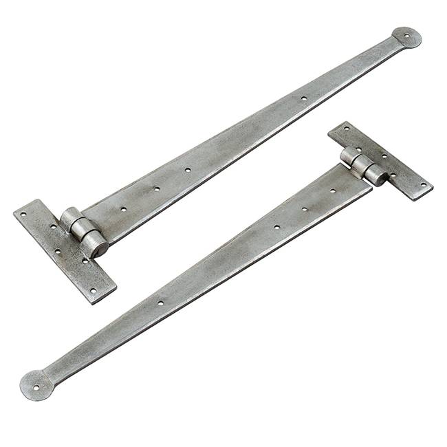 Traditional hand forged penny end T hinge in pewter finish
