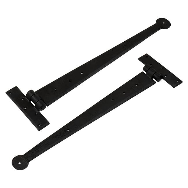 Traditional hand forged penny end T hinge in black beeswax finish