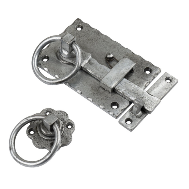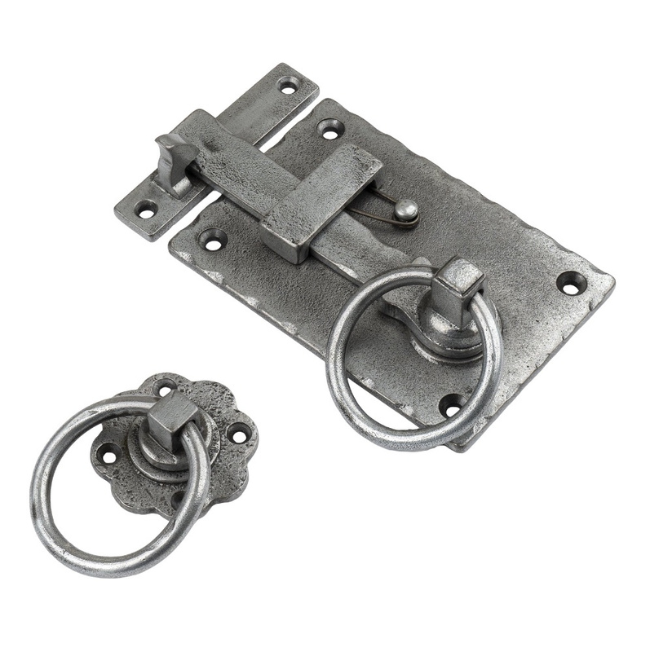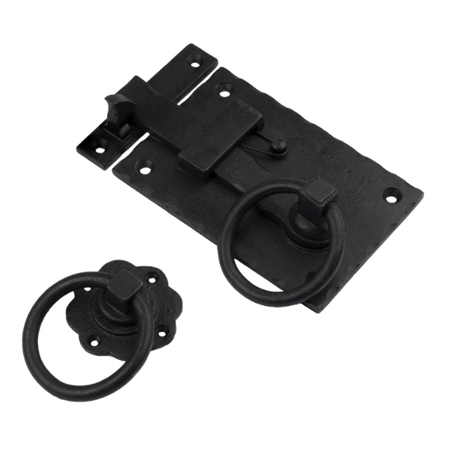 Cottage Latches offer a traditional rustic look for your doors. This style of latch has a pair of ring turns with a latch bar set on a rectangular backplate. The latch bar side is fitted to the inwards opening side of the door, while the single ring turn handle is designed for the side of the door opening away.