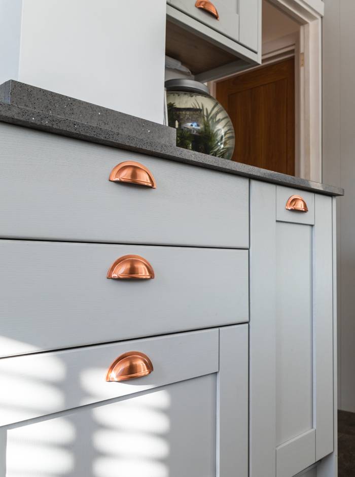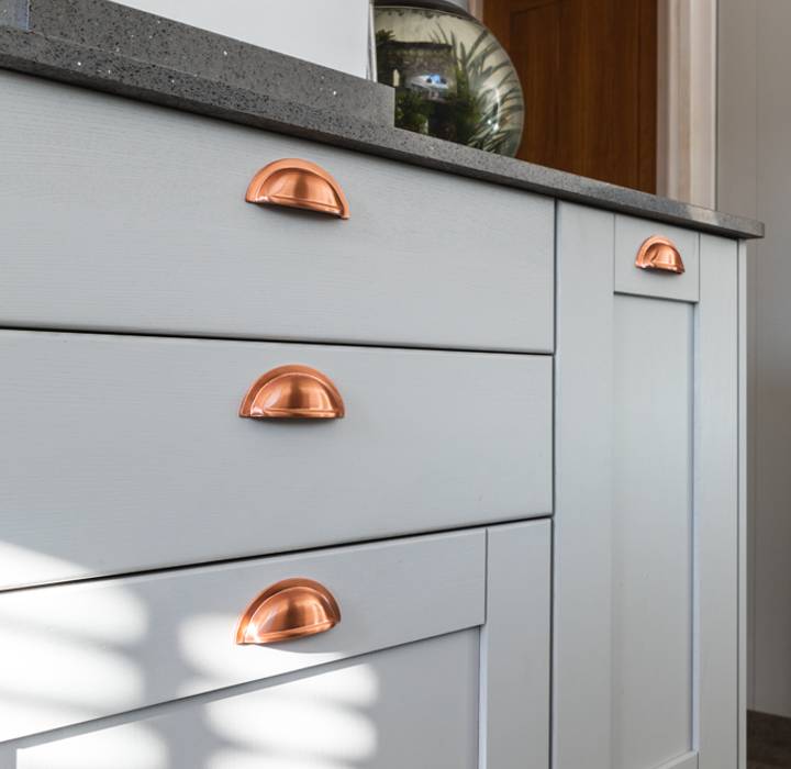 Cup pulls are a great choice for cupboard and drawers, especially in shaker style kitchens. These can be fitted to all cupboard sizes or co-ordinated with knobs and pull handles. Copper, brass, bronze and chrome cabinet furniture are popular choices for modern and traditonal kitchens alike.