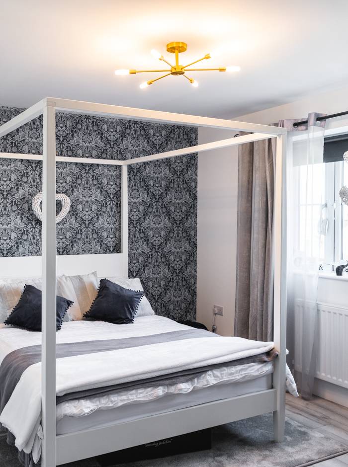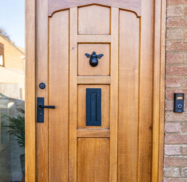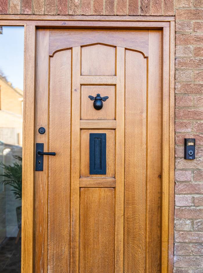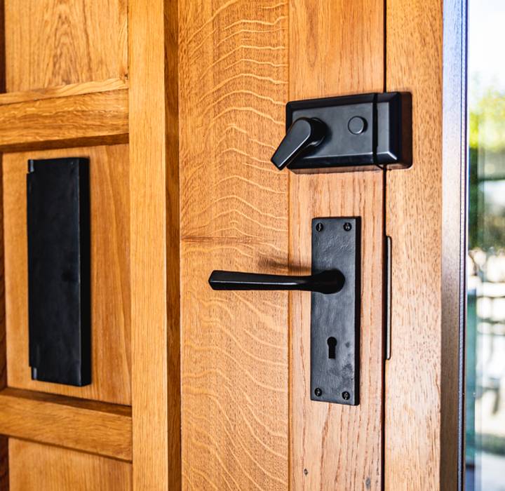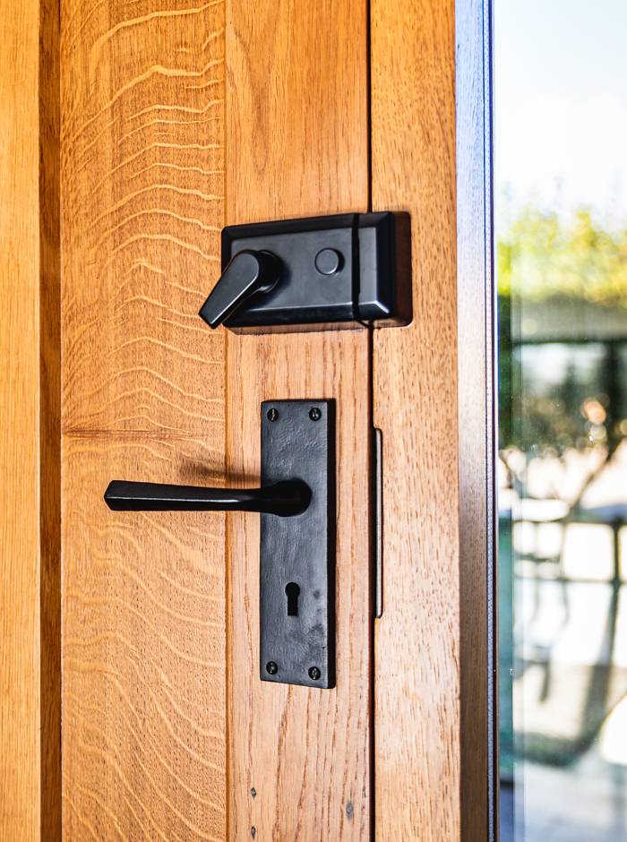 For The Hollies, Laetitia and Adam chose traditional black front door furniture.  Black ironmongery offers a timeless look, echoing the balance between modern and traditional that is found in the interior design of the home. The black also contrasts beautifully with the white weather-boarded sections of the property and the timber panelled door.