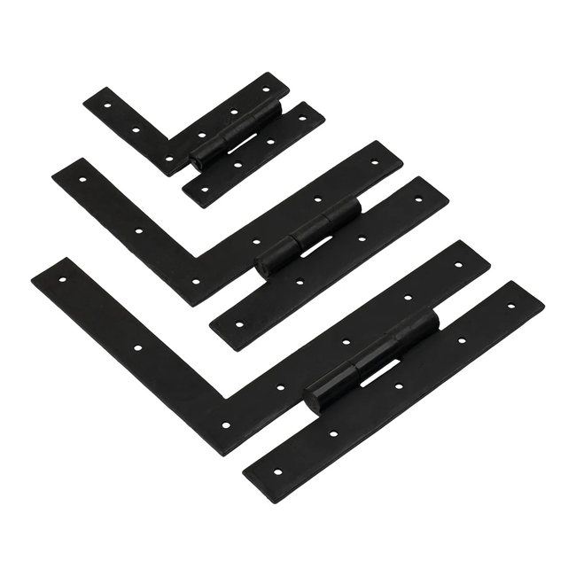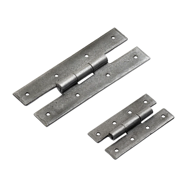 H and HL hinges can be traced back to 17th-century blacksmithing, where they evolved from earlier strap hinges used on heavy plank doors. As joinery techniques improved, blacksmiths developed the H design to create a compact hinge suited to smaller doors and shutters.