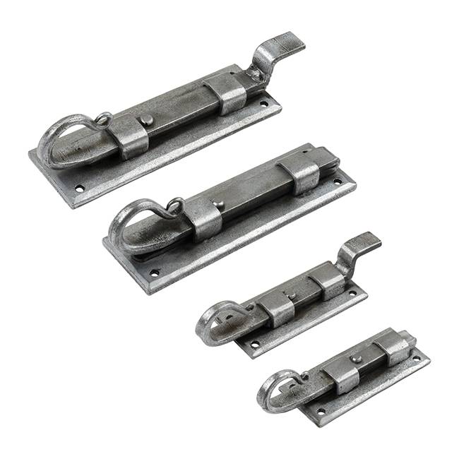 Our hand-forged door bolts, available in traditional beeswax and pewter finishes, are intended for use on internal doors, window shutters, and bathrooms where privacy and additional security are required. The beeswax and pewter coatings provide a rich decorative finish but offer no long-term protection against moisture or temperature changes.
