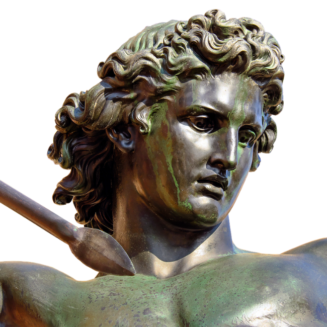 Bronze was the first metal alloy ever made and was created by mixing mostly copper with a small amount of tin. History tells us it was invented around 3300 BC, and began the period of human history that became known as the Bronze Age. The mixture of copper and tin created a versatile metal, considerably harder than its constituent metals and its use became widespread. Archeological digs have uncovered many domestic and military items such as swords, knives, coins and bowls. It is well known for being used to cast sculptures.