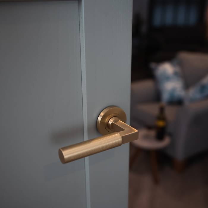 • bronze knurled lever on rose door handle, modern handles