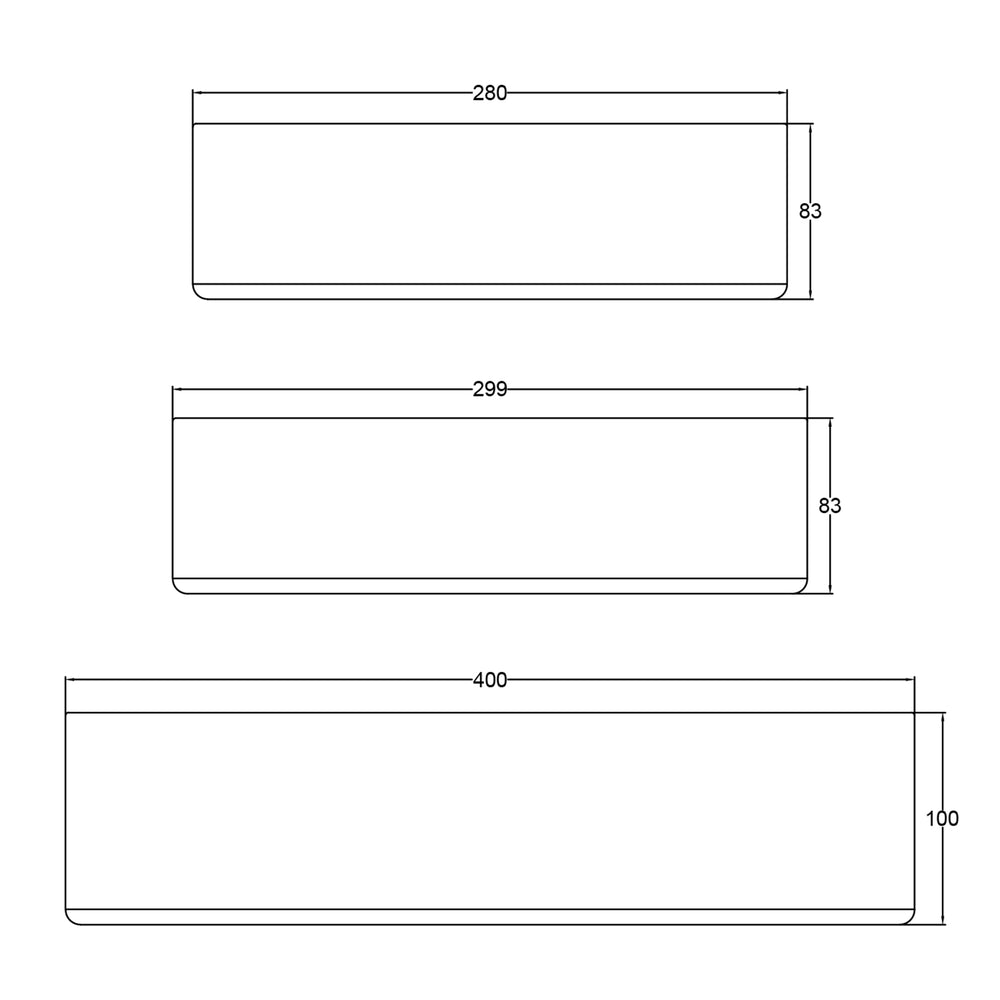 • Sizes: 280x81mm, 299x84mm or 403x100mm