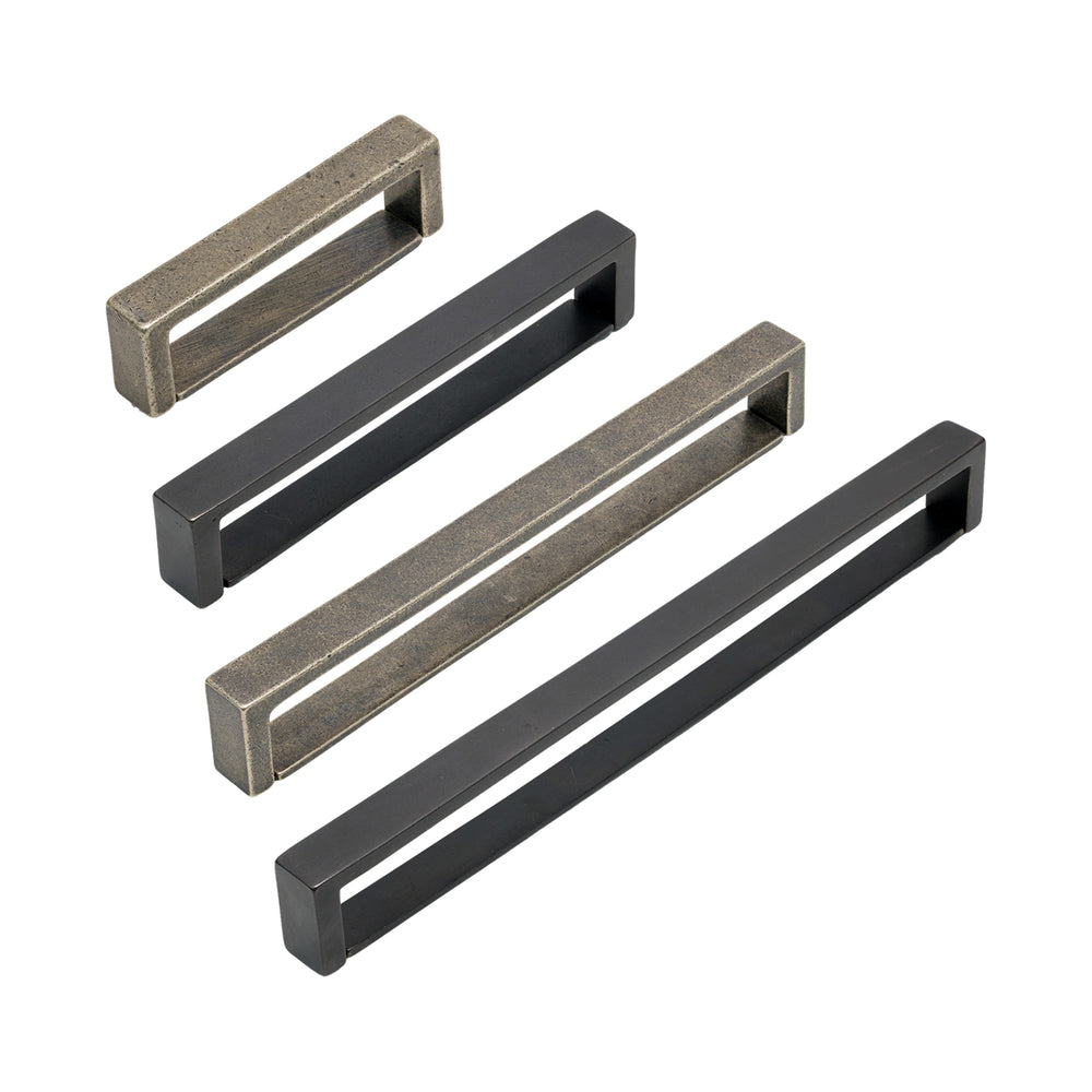 Cast from solid bronze, the handle carries a substantial feel and a smooth finish that stands up well to everyday use. Each finish brings out different qualities in the design: Dark Bronze offers a richer, more traditional depth, while White Bronze introduces a lighter, cooler tone that suits contemporary interiors. The clean geometry makes this pull an excellent choice for cabinetry where a tidy, uniform look is desired throughout a room.
