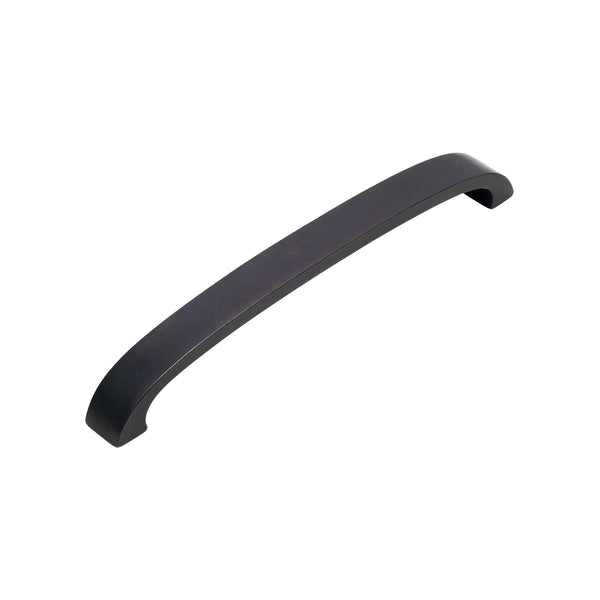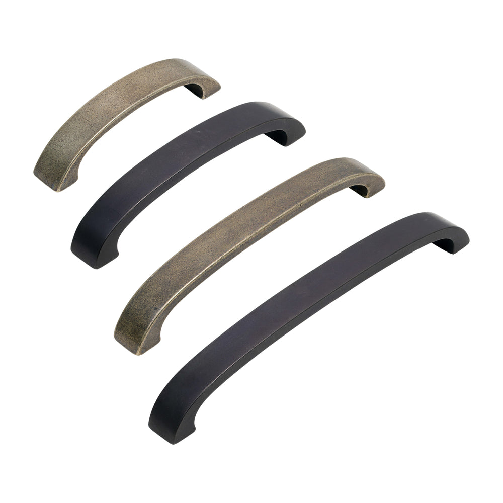 The Bronze C-Shaped Cabinet Pull Handle features two square fixing points that lead into a smooth, sweeping arch, giving it a distinctive curved profile often found on traditional furniture. The bar itself is cast in a rectangular section, adding a clean, structured edge to the otherwise gentle curve. This combination of shape and proportion makes the handle comfortable to hold while offering a pleasing visual balance across both drawers and taller cupboard doors.