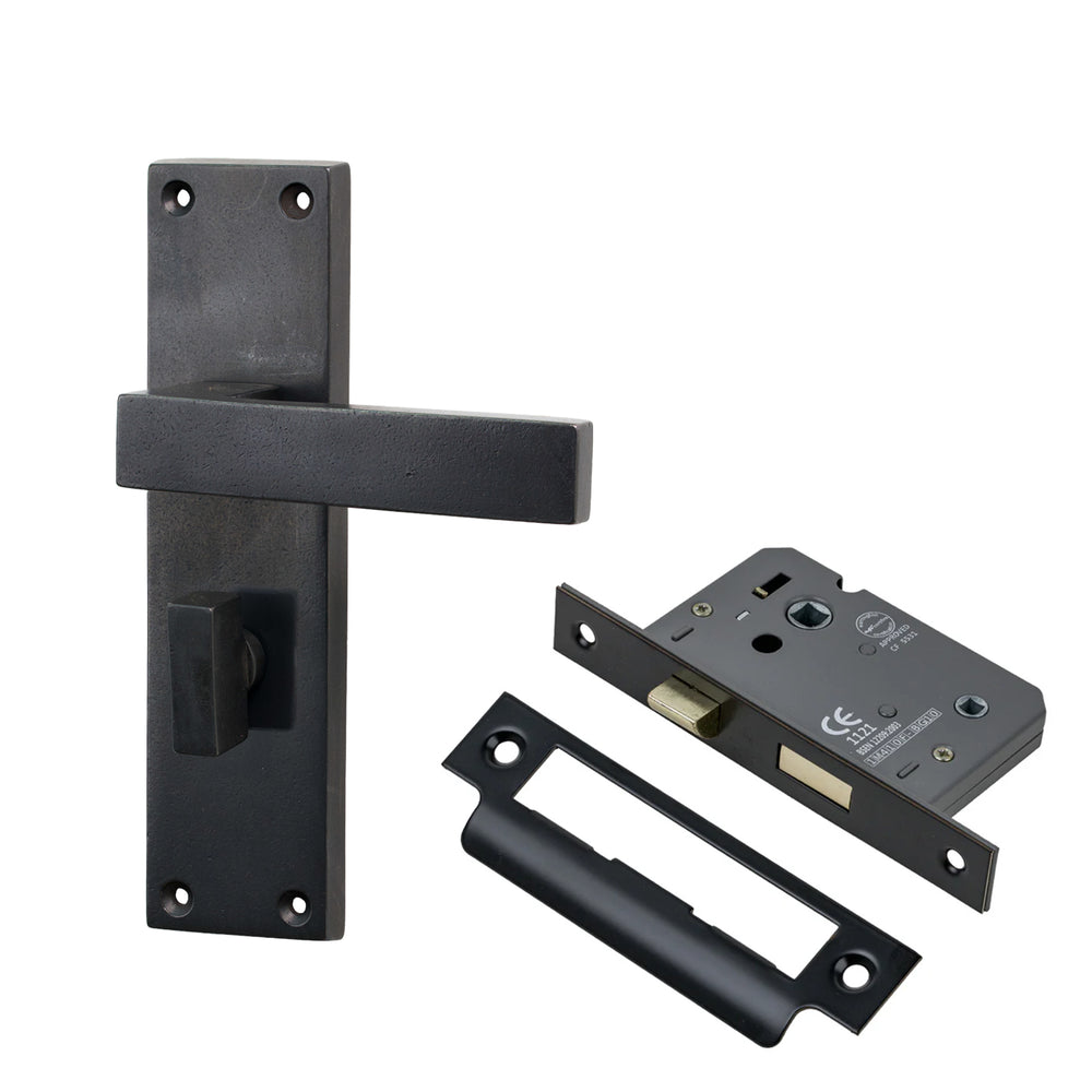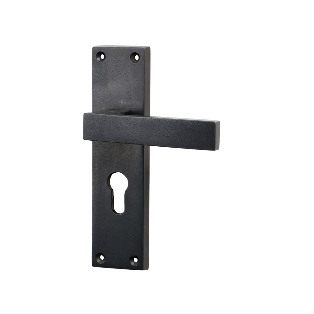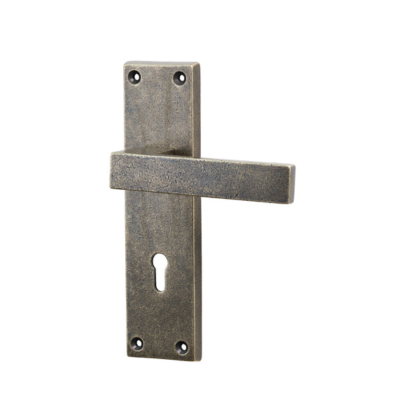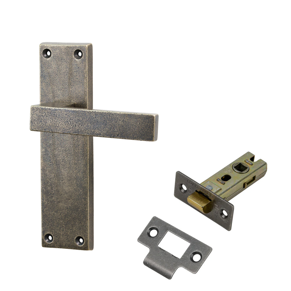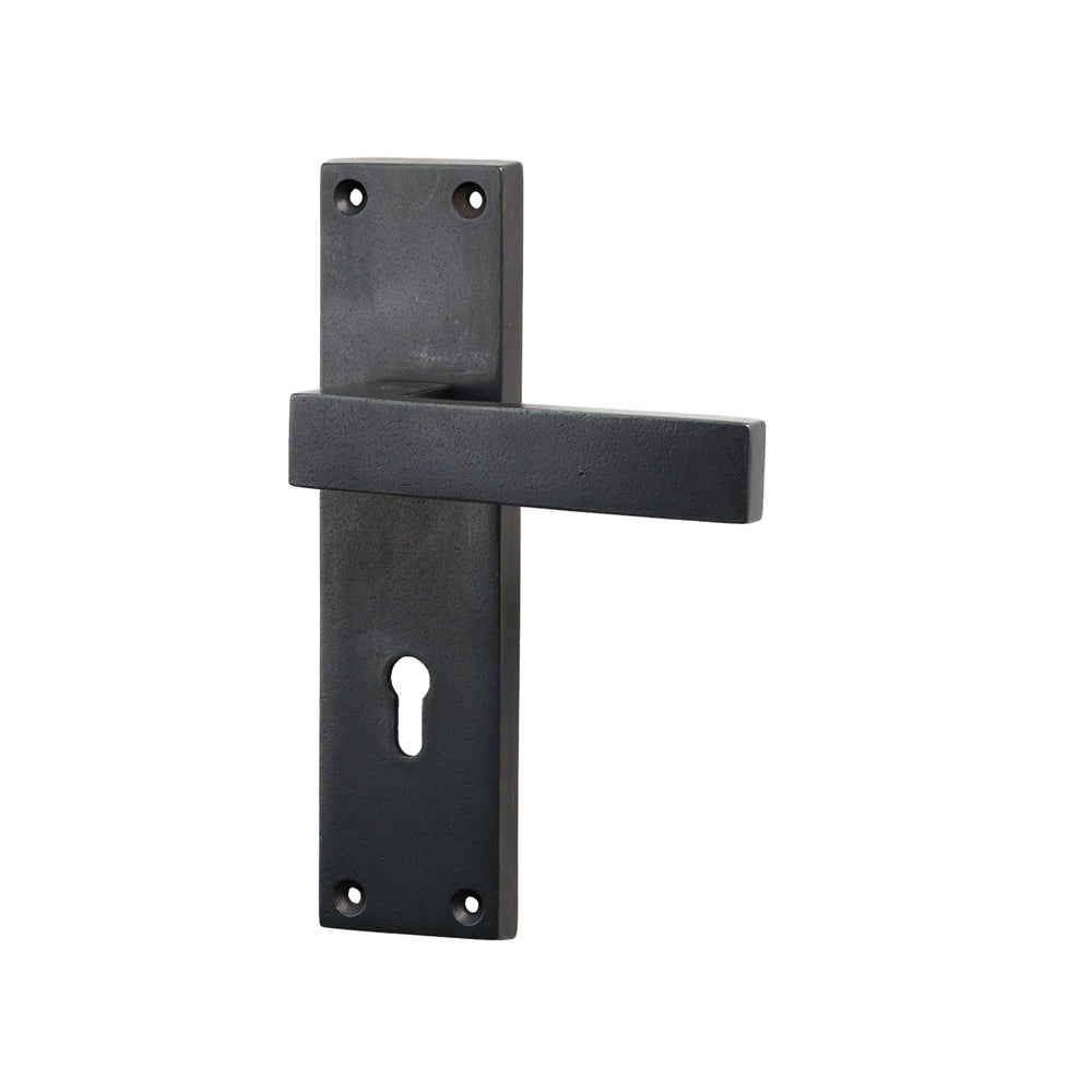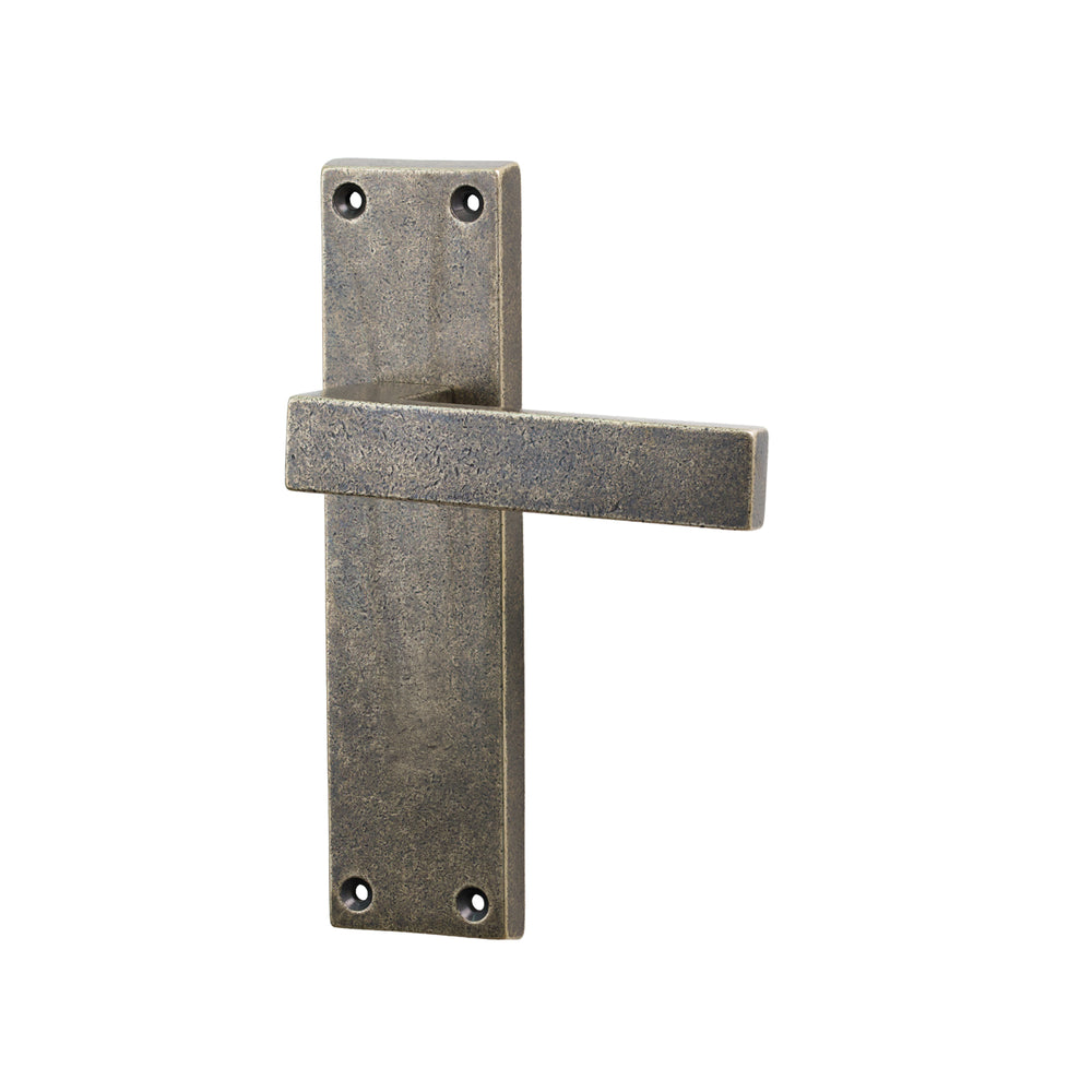 The Bronze Cheswell Door Handle on Backplate features a strong, architectural look with a wide rectangular lever that bends in a sharp right angle into the backplate. The lever sits flat and straight, giving the handle a crisp, modern profile while the straight-edged rectangular backplate keeps the design clean and structured. Its simplicity makes it highly versatile, working well across both contemporary interiors and modernised period properties.
