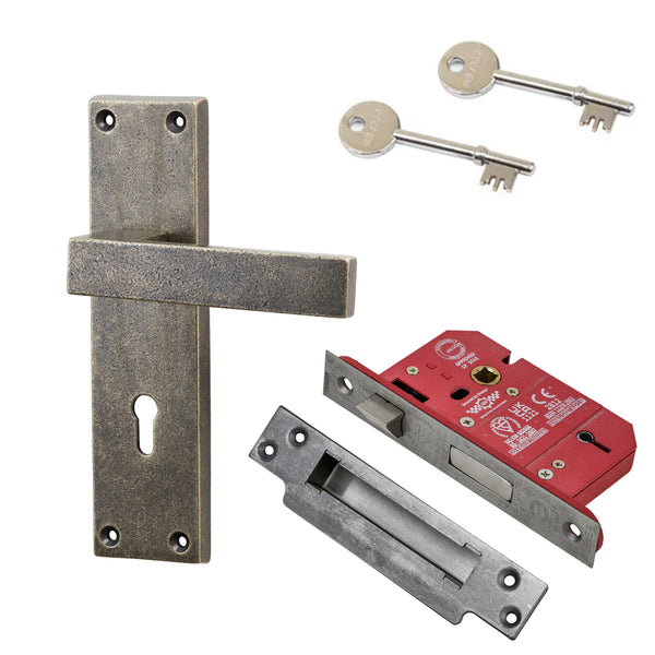 Made from solid bronze, the Cheswell handle has a satisfying weight and natural durability suited to both internal and external doors. Bronze is especially resistant to corrosion, making it an excellent choice for coastal environments. If you are replacing existing hardware, the handle can be purchased individually in latch, lock, bathroom or euro-profile variants. For new installations, complete sets are available — latch sets, 3-lever and 5-lever lock sets, bathroom lock sets and euro profile sets — providing reassurance that all supplied components will work correctly with your door. Matching slotted countersunk screws are included for a neat installation.