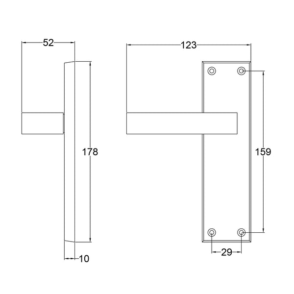 • Style: Rectangular lever with sharp right-angle return on flat backplate