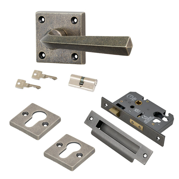 Cast from solid bronze, the handle has a substantial feel and a surface that matures naturally with use. Bronze performs exceptionally well on both internal and external doors and is particularly suited to coastal environments because of its natural resistance to corrosion. For replacing existing hardware, the handle can be purchased individually. For new door installations, complete sets — latch sets, bathroom lock sets, 3-lever lock sets and euro-profile lock sets — are available to ensure full compatibility and straightforward fitting. Matching slotted countersunk screws are supplied for a neat and secure installation.