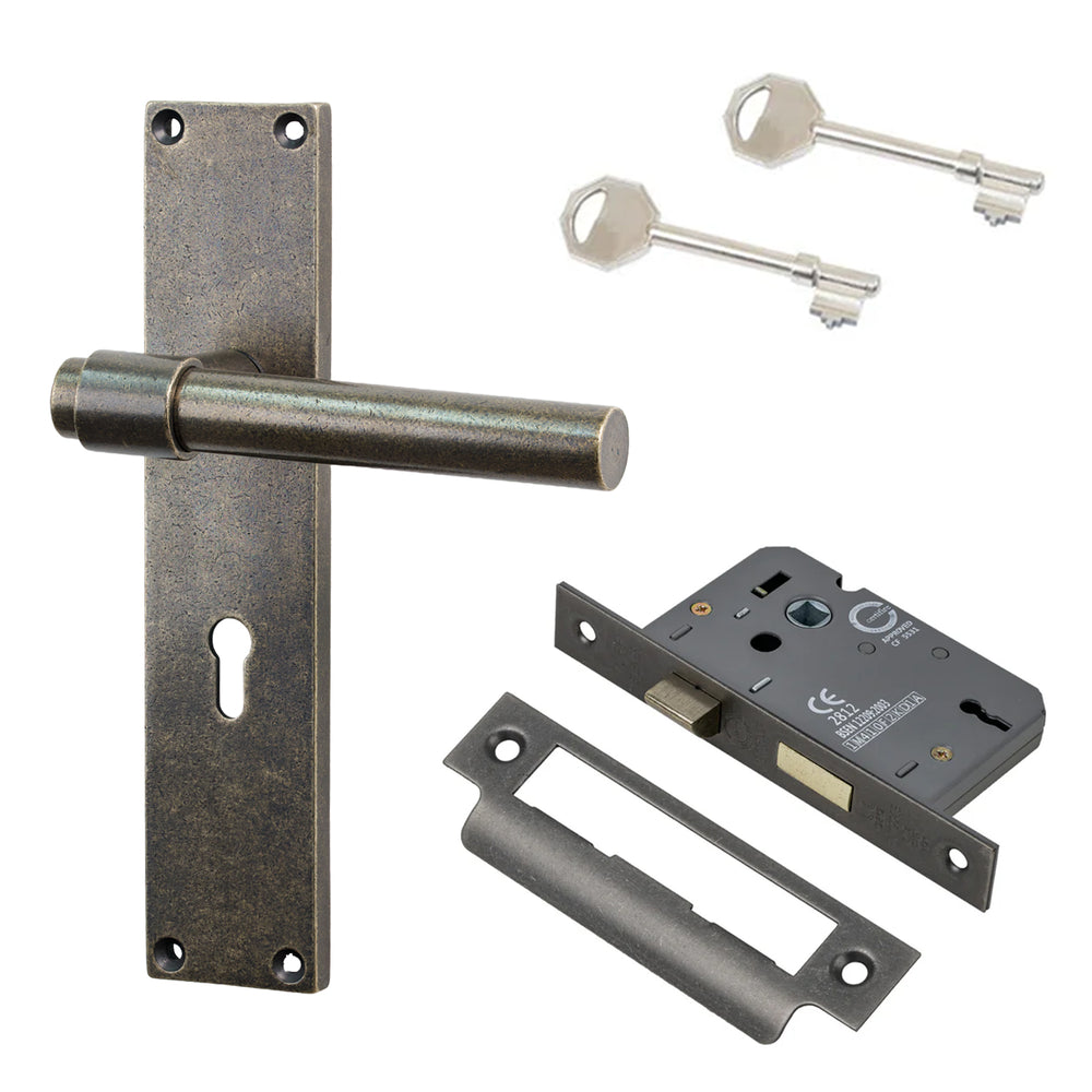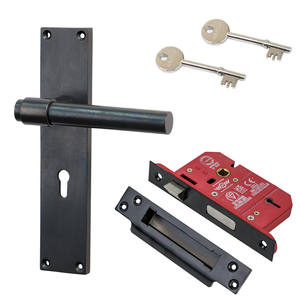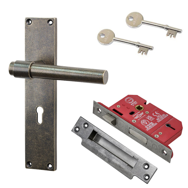 Cast from solid bronze, the handle has a satisfying weight and a refined finish that will mature naturally with age. Bronze can be used on both internal and external doors and is especially well suited to coastal environments due to its natural corrosion resistance. If replacing existing door hardware, the handles can be purchased individually in latch, lock, bathroom or euro-profile variants. For new installations, a full range of complete sets is available — latch sets, 3-lever and 5-lever lock sets, bathroom lock sets and euro profile sets — giving you reassurance that everything supplied will work correctly with your door. Matching slotted countersunk screws are included for a clean and secure installation.