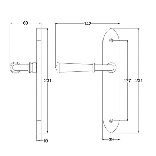 • Style: Gothic-inspired sweeping round lever on arched backplate