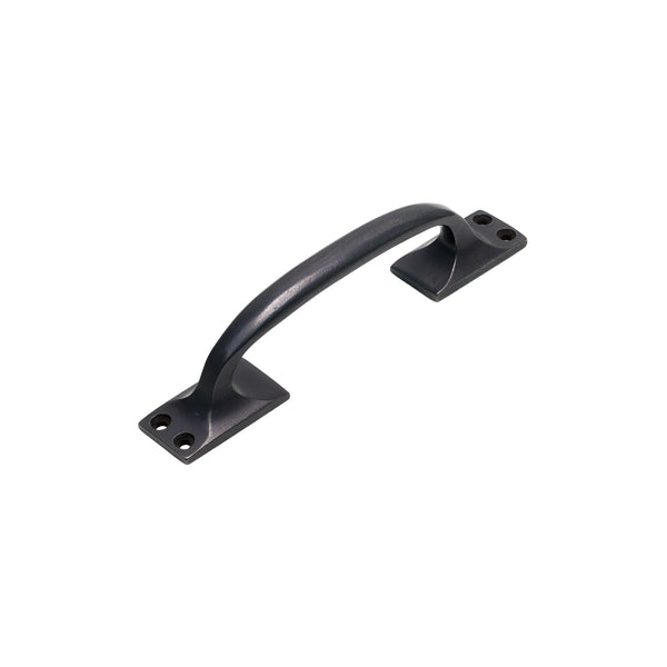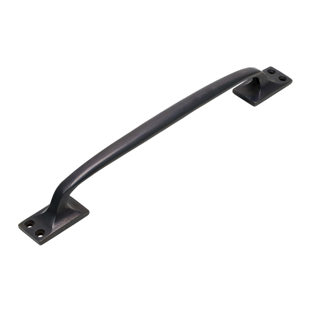 The Bronze Offset Cabinet Pull Handle features a gently curved grip set slightly to one side of its rectangular fixing feet, creating a subtle off-centre profile. This offset design allows the handles to sit in a visually balanced arrangement when used on a pair of cabinet doors. The smooth curve provides a comfortable grip, while the clean edges of the feet give the pull a tidy architectural look suited to both modern and classic furniture styles.