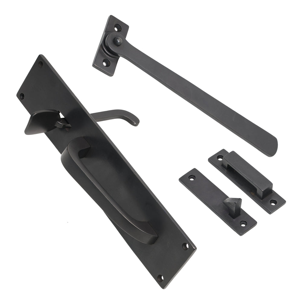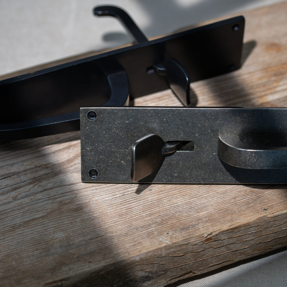 The Bronze Thumb Latch on Backplate is inspired by the traditional Norfolk latch, featuring a long rectangular backplate paired with a straight latch bar and simple thumb-operated handle. The clean lines and understated form make it a practical and versatile choice for ledge-and-braced doors, cottage-style interiors and utility rooms where a classic but unfussy latch is preferred. The generous plate length gives the latch a strong visual presence while helping to cover existing fixing marks on older doors.