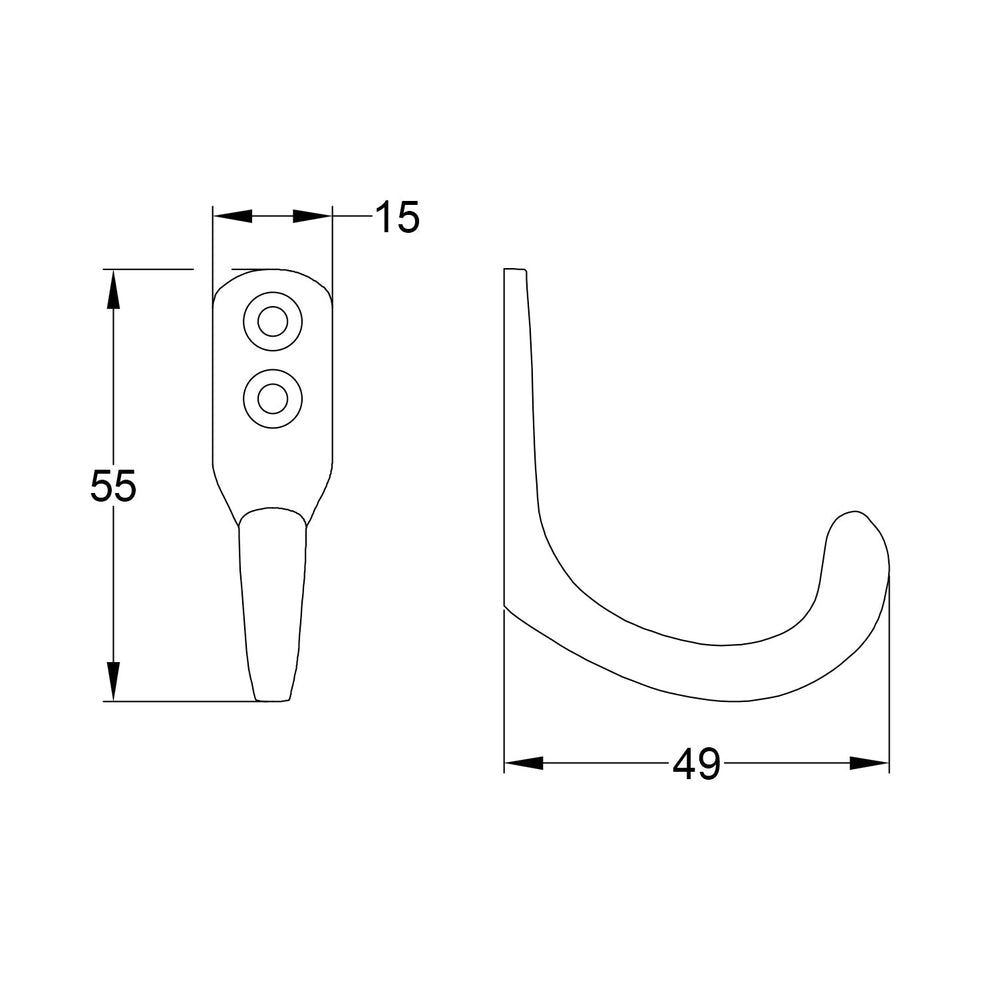 Supplied with matching dome head slotted wood screws, the hook is straightforward to install on wooden doors, panelling, or suitable wall surfaces. It forms part of the Hand Beaten Collection which has a range of matching products such as thumbturns, cabinet knobs and cup pulls