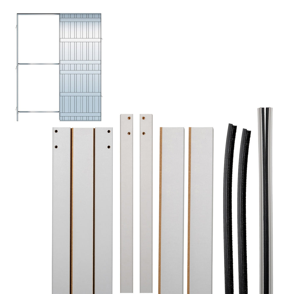 It is ideal for kitchens, bathrooms or any room where space is a luxury, removing the footprint of a conventional door and instead utilising usually wasted space within the wall. This kit is suitable for fitting within a 125mm finished wall and can hold a maximum weight of 100kg per side.
